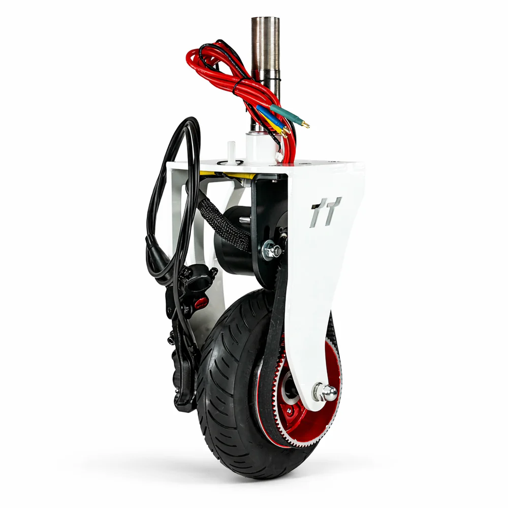 The PRO Fork is built around a one-piece MONO-tube stem and thick 1/4-inch steel side plates. It’s designed to stay rigid under load and precise at speed. An adjustable single-pin motor mount keeps everything locked in, while belt drive and hydraulic brakes deliver smooth power and controlled stopping.