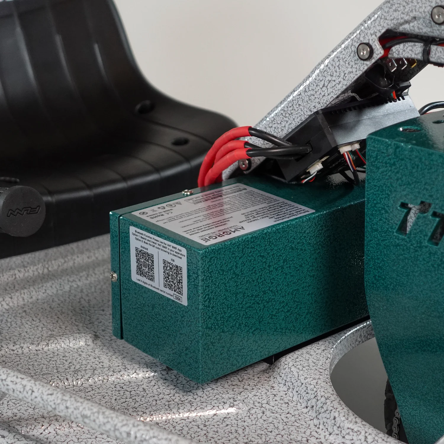 - AMORGE 48v 16ah Battery Pack inside of our powder coated metal battery box.